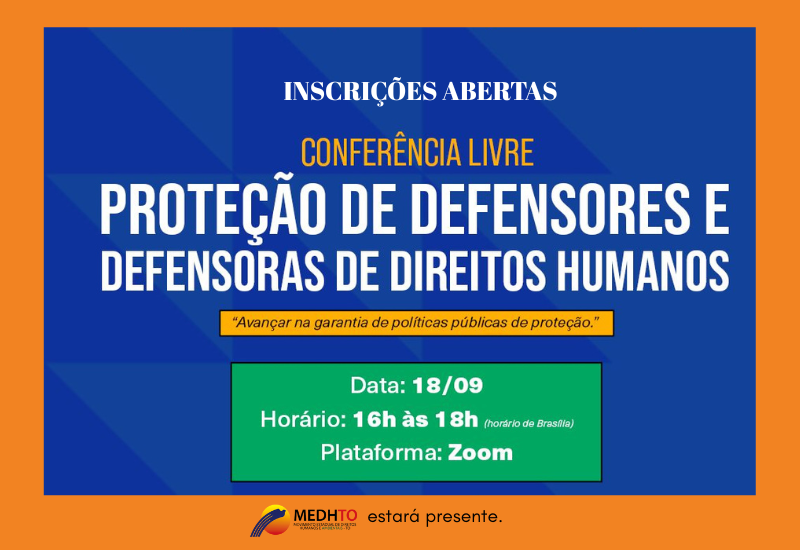 “Este é um espaço em que precisamos estar presentes. A Conferência Livre é uma mobilização fundamental para destacar a urgência de debater os riscos e desafios enfrentados por defensores e defensoras de direitos humanos no Brasil. Vamos juntos participar e fortalecer essa luta”, destaca e convida para o evento a coordenadora do Medhto, Maria Vanir Ilídio.