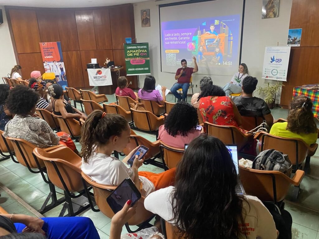 Professor Neilon Willian e o Coletivo Jovem Educadores Ambientais apresentaram a campanha “Amazônia em Pé” durante o seminário.