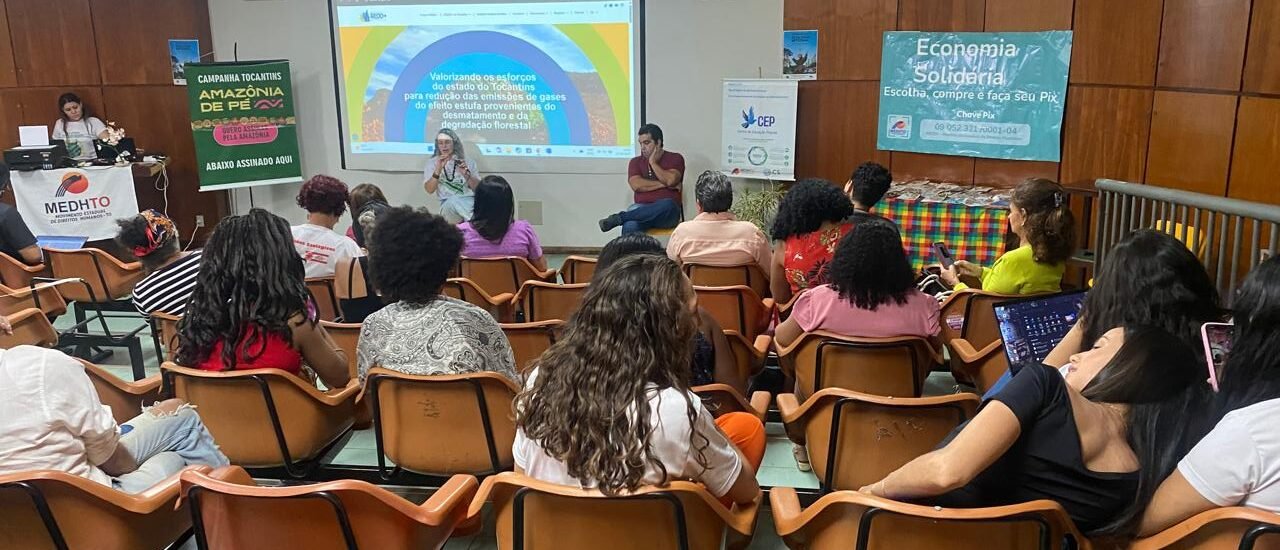 A programação contou com a apresentação da defensora pública Dra. Franciana Di Fátima Costa, sobre a ‘Legalização e Impactos Ambientais do REDD+’, o Diagnóstico de Questões Ambientais em Palmas, pela coordenadora do MEDH/TO, Maria Vanir Ilídio, e a Campanha Amazônia em Pé, com o professor Neilon Willian e o Coletivo Jovem Educadores Ambientais.